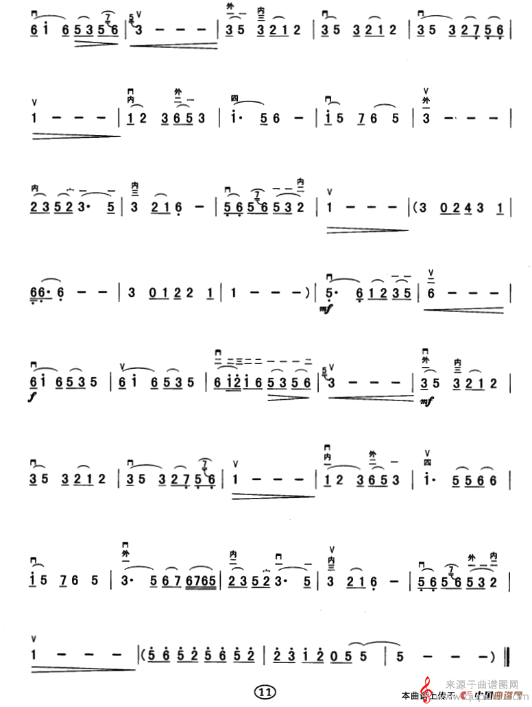提示:在曲谱图片上单击右键,选择“图片另存为...”即可将曲谱保存到您的电脑中,打印时候可将图片插入到WORD中,调整合适大小打印即可。