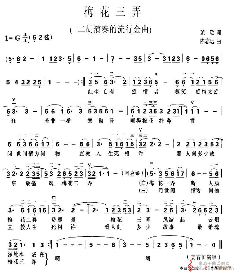 曲谱图网为您提供梅花三弄(梅花三弄歌词简谱胡琴谱教学)找谱子,就上曲谱图网。