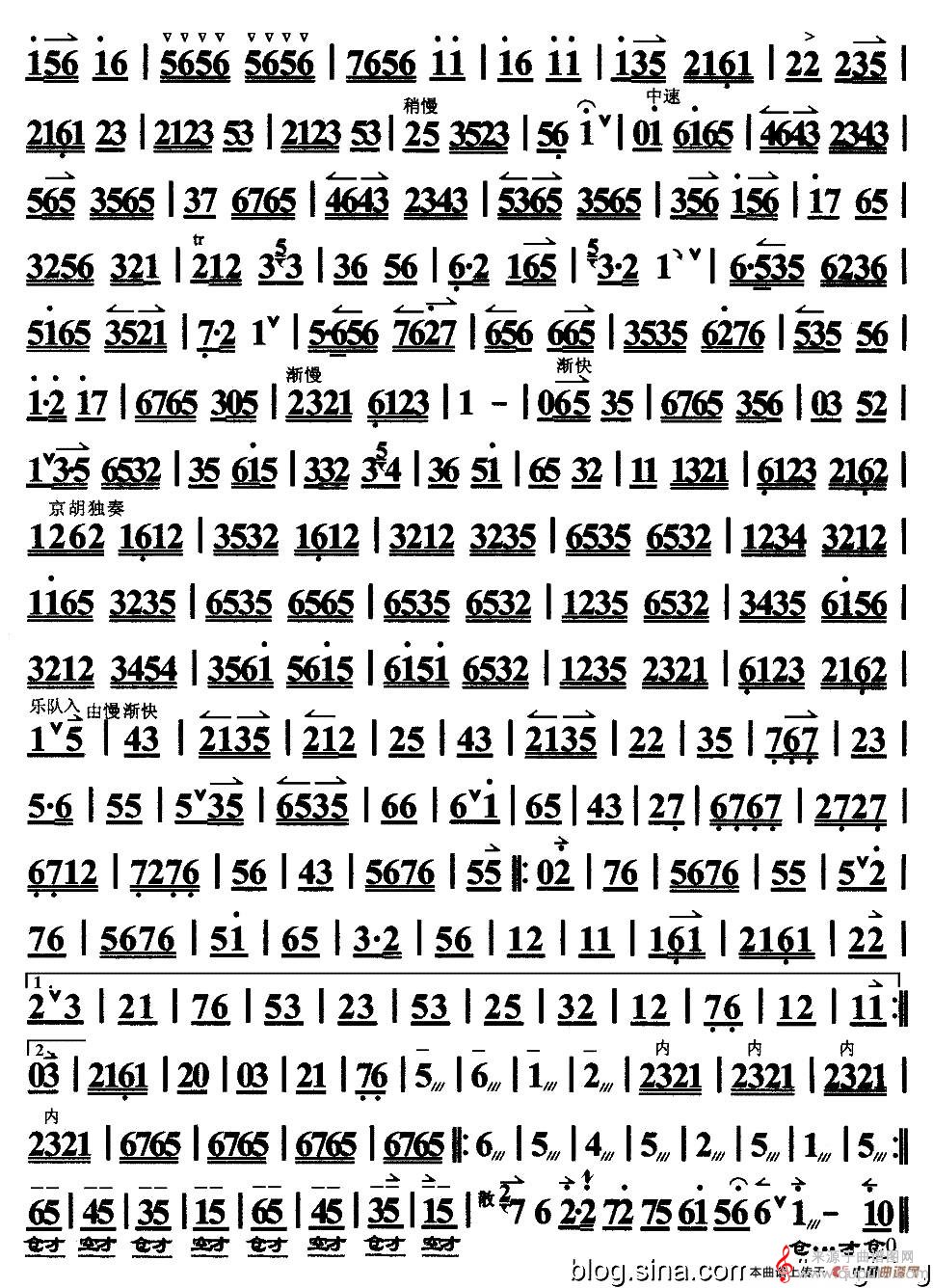 琴缘(京胡独奏谱简谱曲谱)