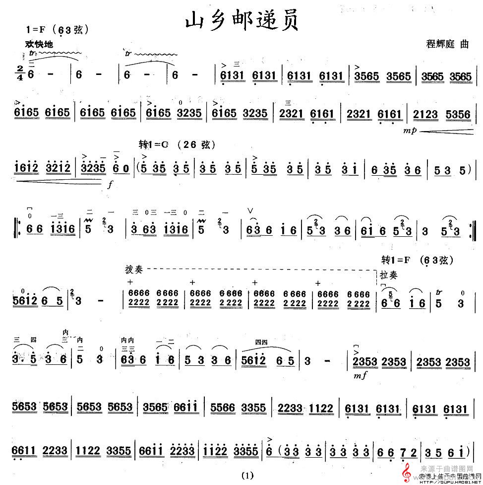 当前位置:曲谱图网器乐曲谱胡琴山乡邮递员(山乡邮递员简谱胡琴谱教学)
