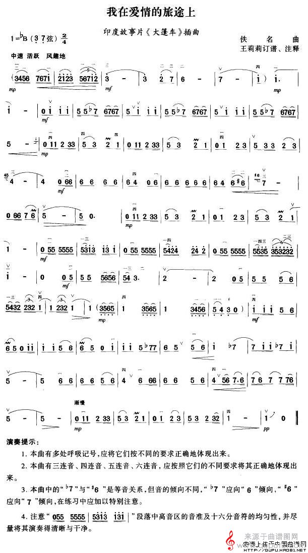 曲谱图网为您提供我在爱情的旅途上(印度电影《大蓬车》插曲简谱胡琴谱)找谱子,就上曲谱图网。