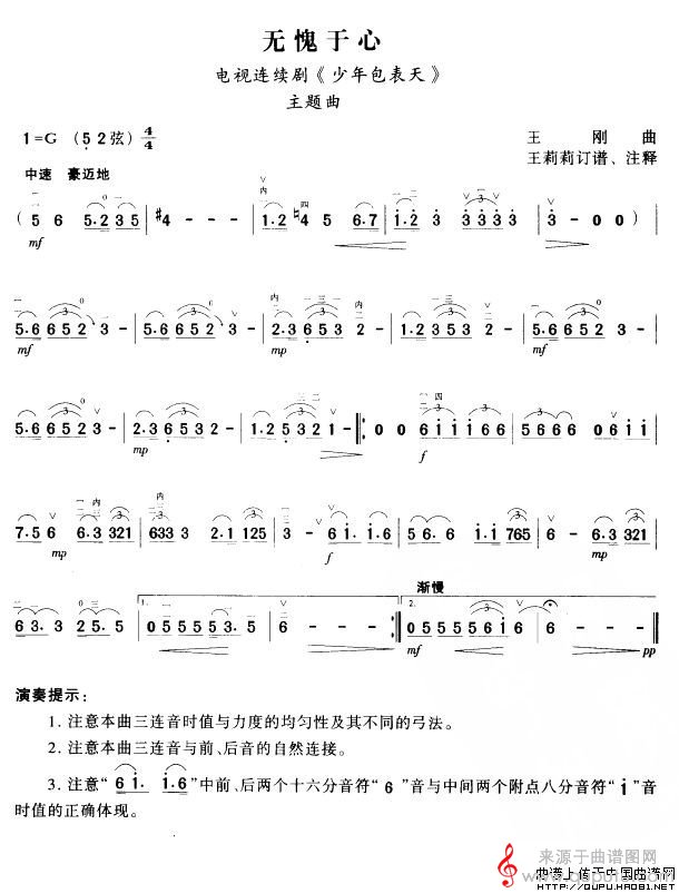 无愧于心(电视剧《少年包青天》主题曲简谱胡琴谱)