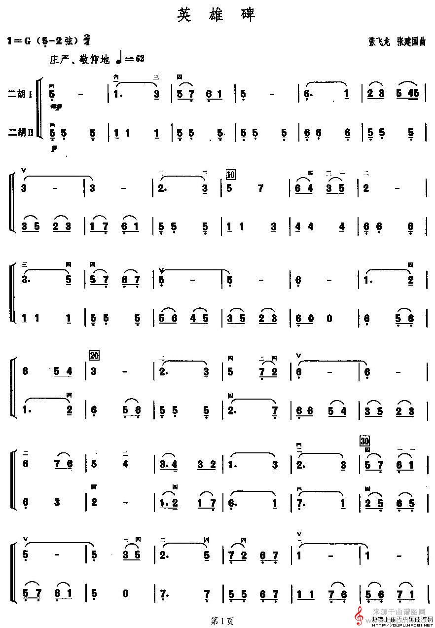 当前位置:曲谱图网器乐曲谱胡琴英雄碑(二胡二重奏歌词简谱胡琴谱)