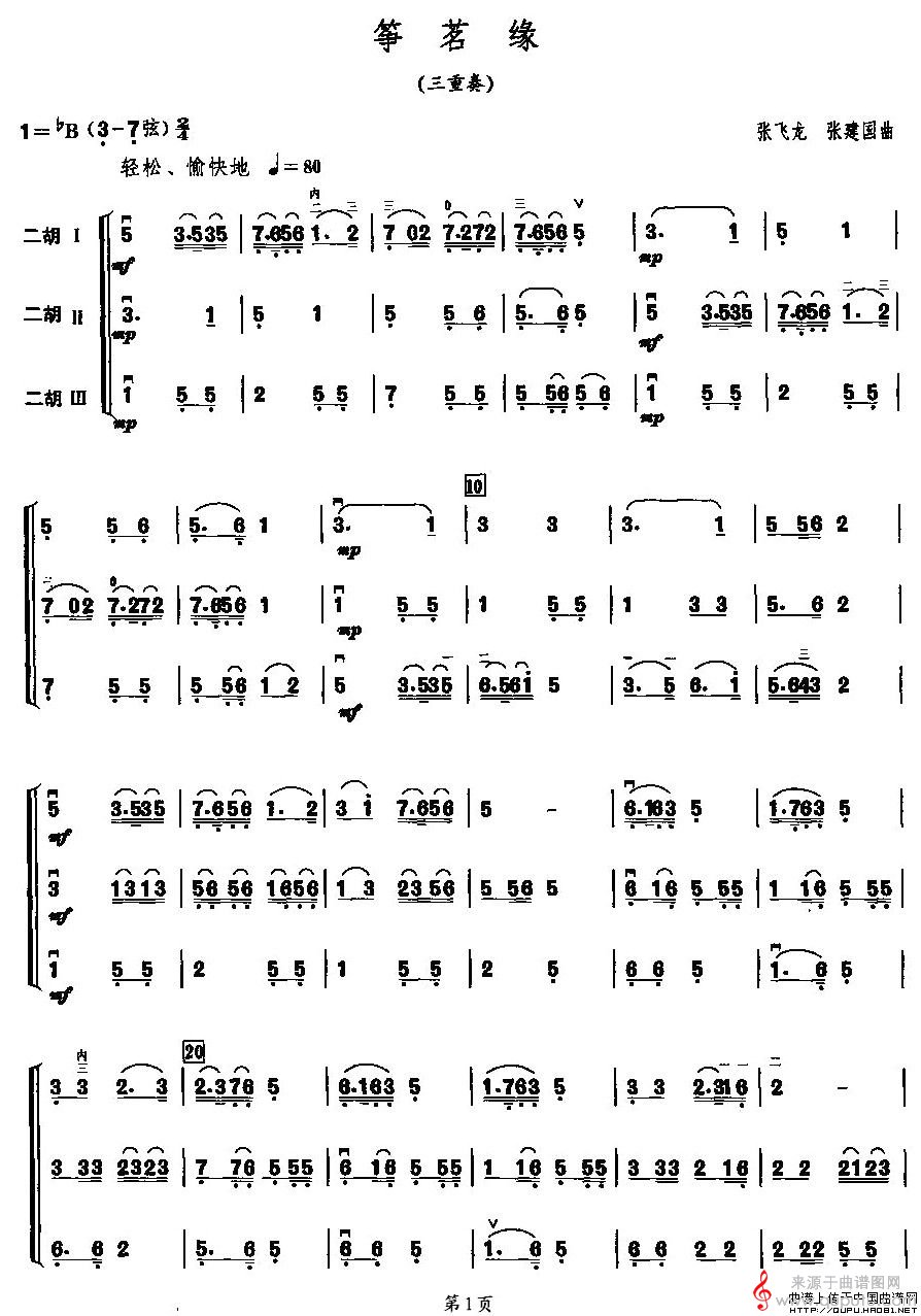 曲谱图网为您提供筝茗缘(二胡三重奏原创胡琴谱简谱教学)找谱子,就上曲谱图网。