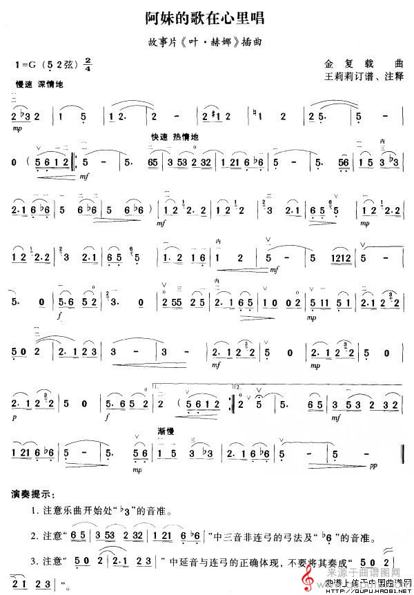 曲谱图网为您提供阿妹的歌在心里唱(故事片《叶·赫娜》插曲简谱胡琴谱)找谱子,就上曲谱图网。