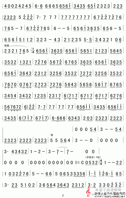 梅花(京胡协奏曲歌词简谱胡琴谱)