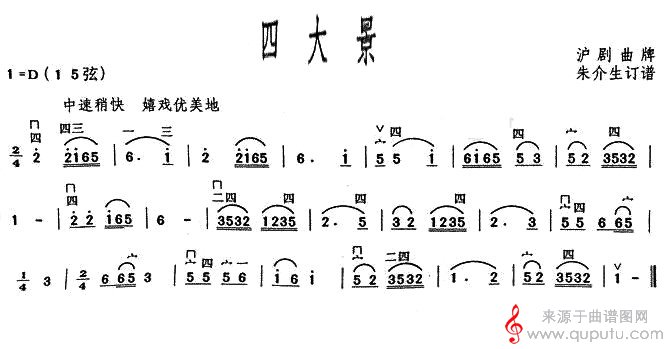 曲谱图网为您提供四大景(沪剧曲牌四大景简谱胡琴谱)找谱子,就上曲谱图网。