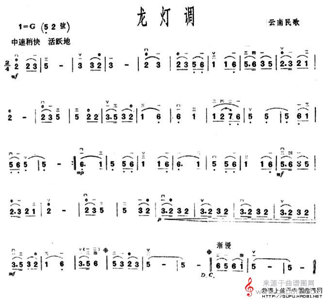 曲谱图网为您提供龙灯调(云南民歌龙灯调简谱曲谱胡琴谱)找谱子,就上曲谱图网。