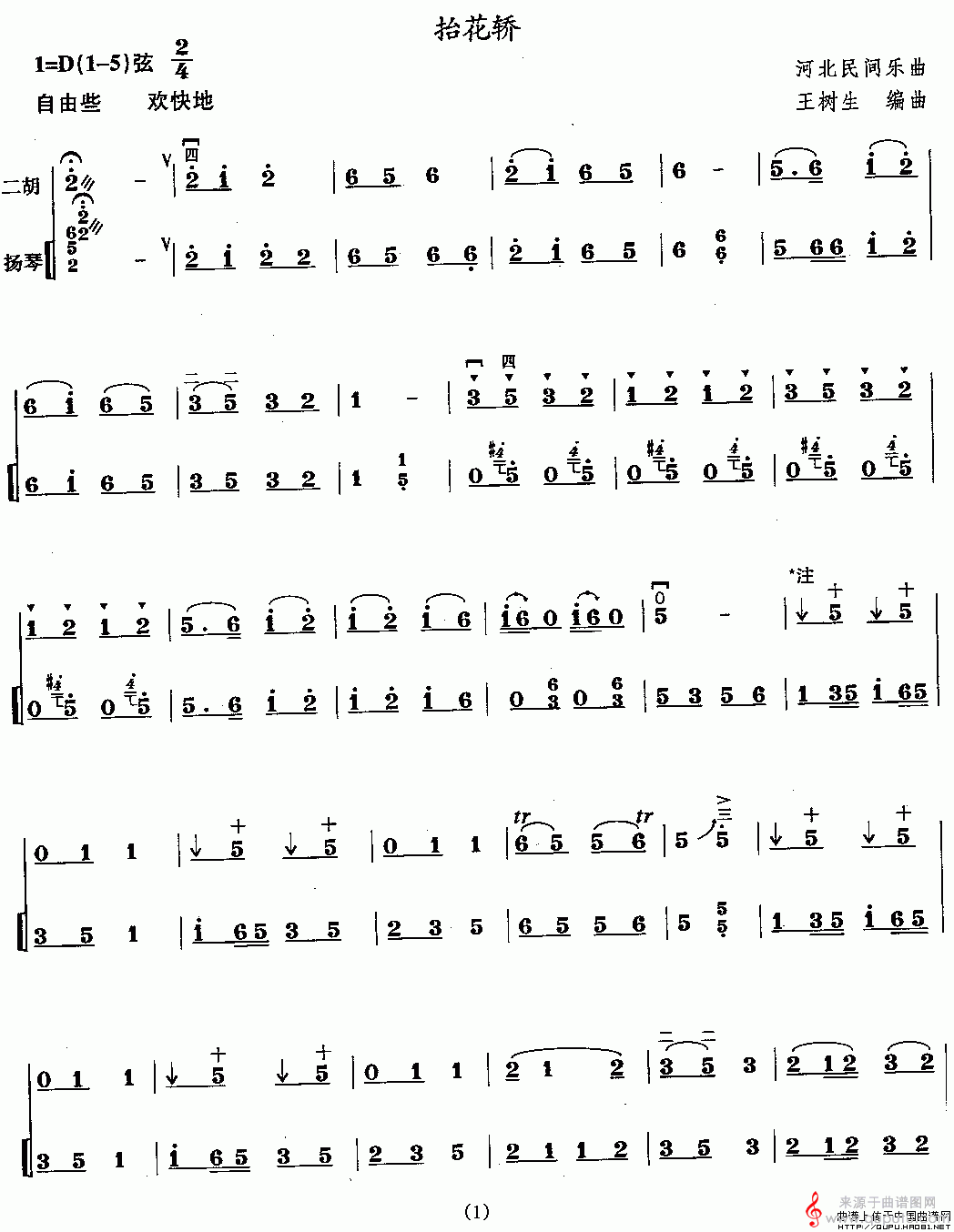 曲谱图网为您提供抬花轿(湖北民间乐曲抬花轿扬琴伴奏谱简谱)找谱子,就上曲谱图网。