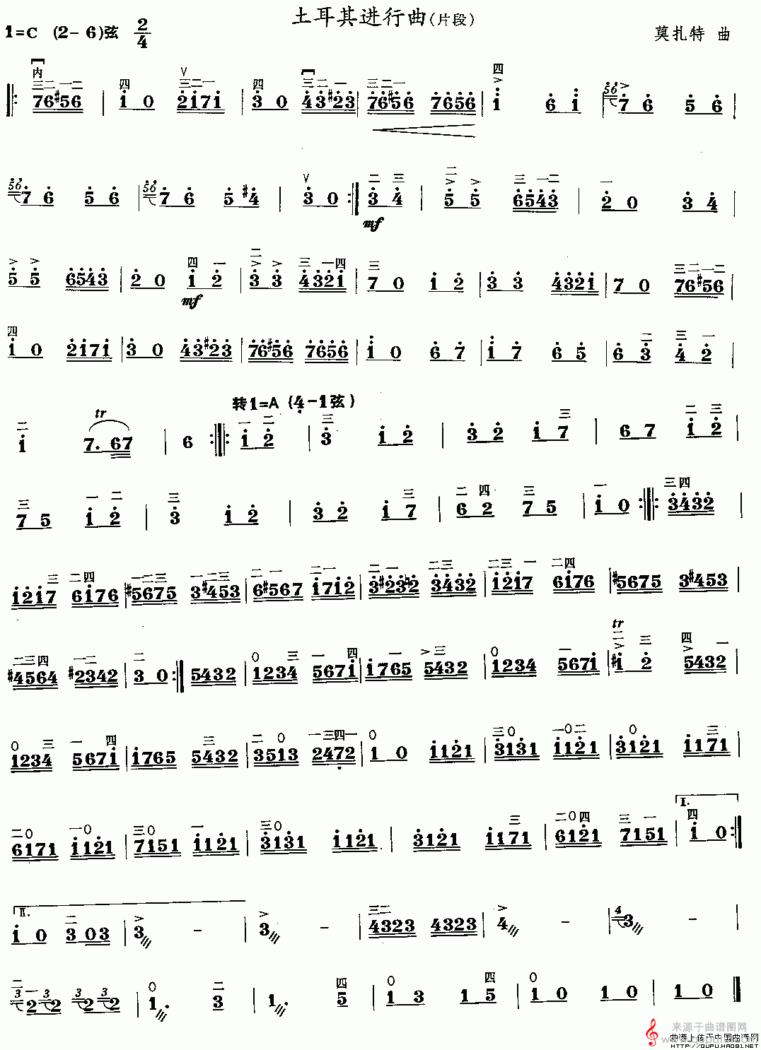 土耳其进行曲(土耳其进行曲片段简谱胡琴谱)