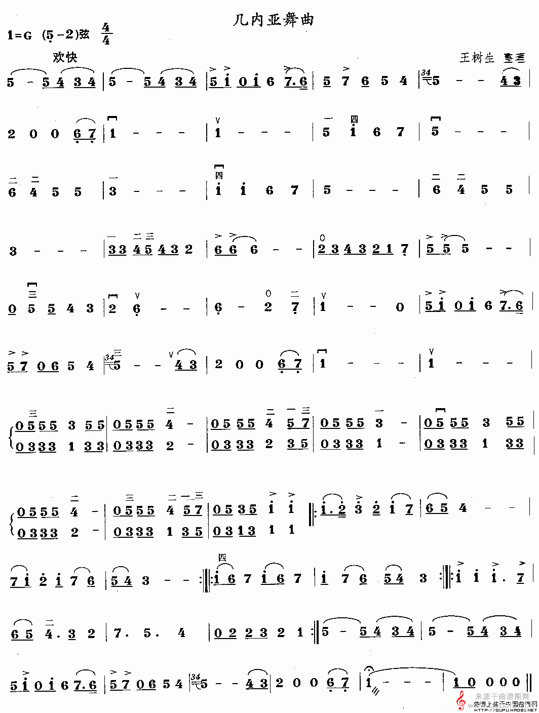 几内亚舞曲(王树生作曲版几内亚舞曲简谱胡琴谱)