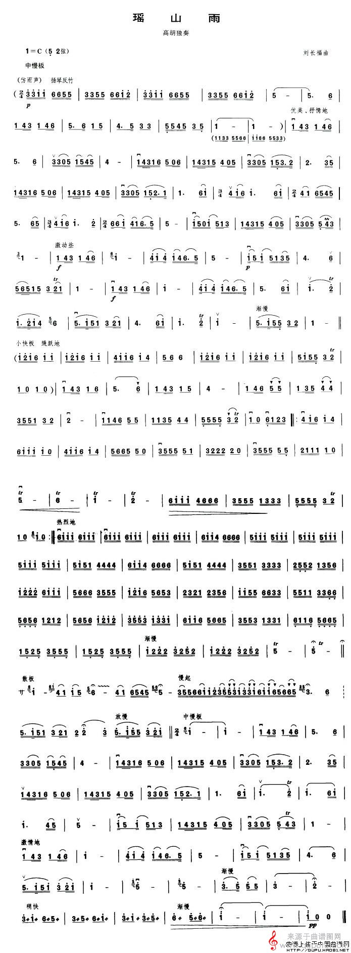 瑶山雨(高胡独奏曲瑶山雨刘长福作曲版简谱)