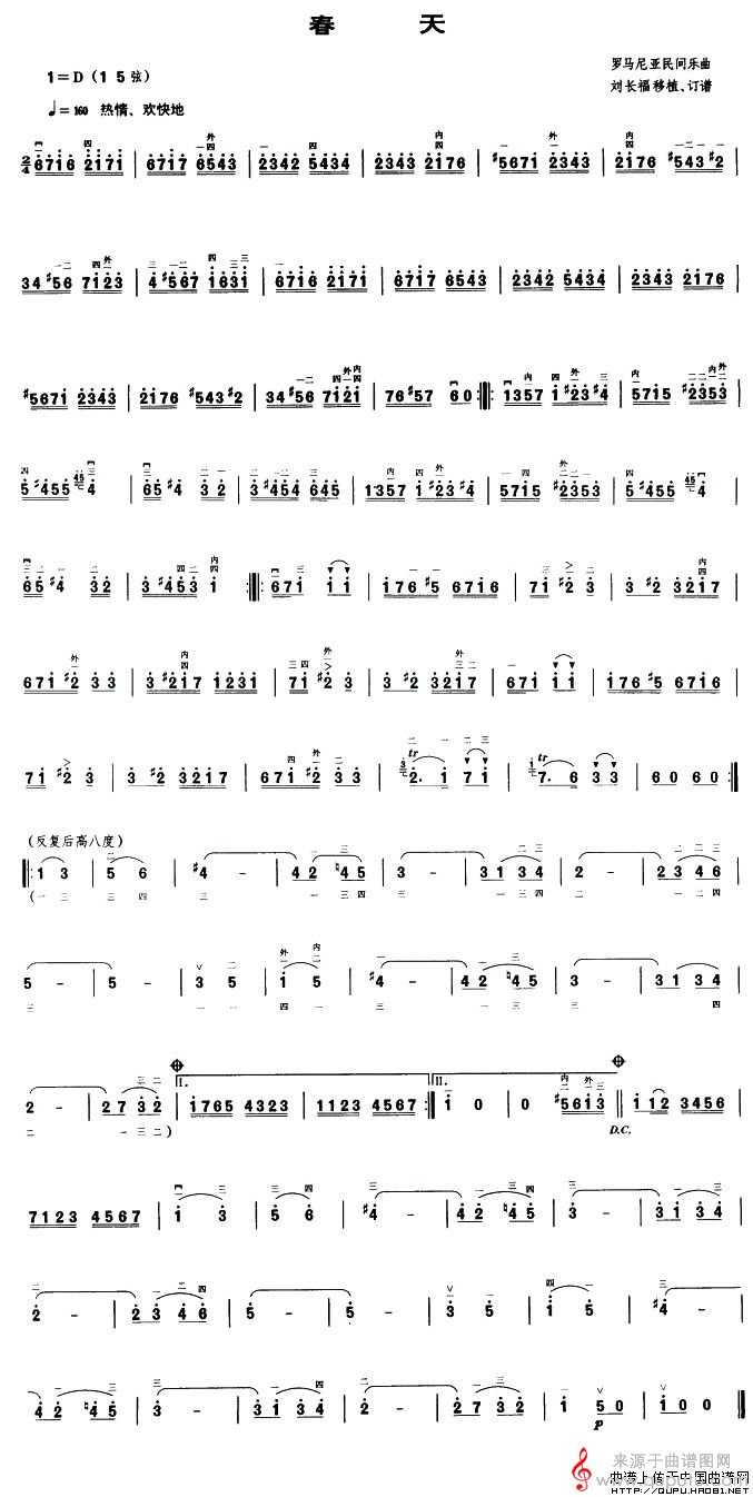 当前位置:曲谱图网器乐曲谱胡琴春天(罗马尼亚民间乐曲春天简谱)