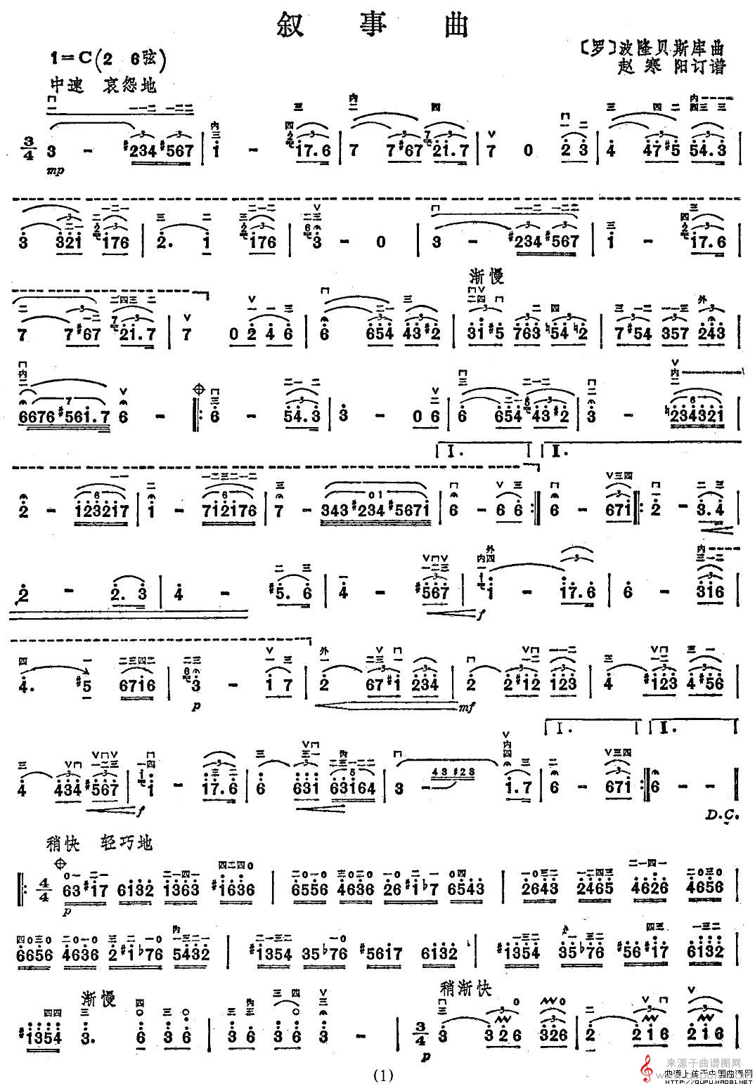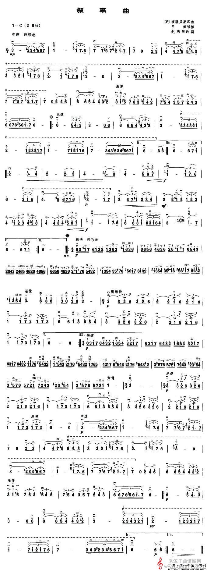 曲谱图网为您提供叙事曲(叙事曲歌词简谱曲谱胡琴谱教学)找谱子,就上曲谱图网。