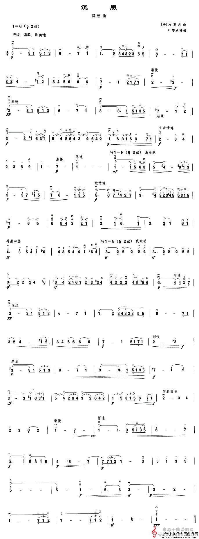沉思(冥想曲沉思简谱胡琴谱)