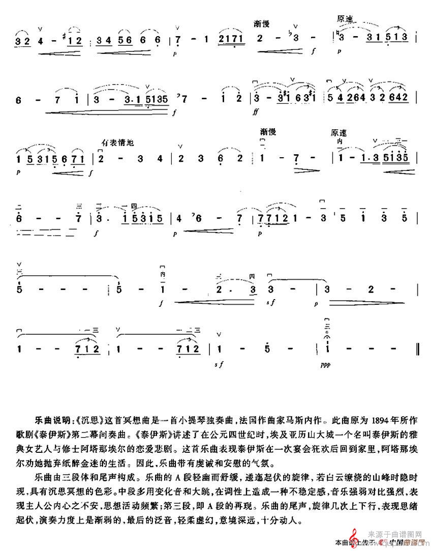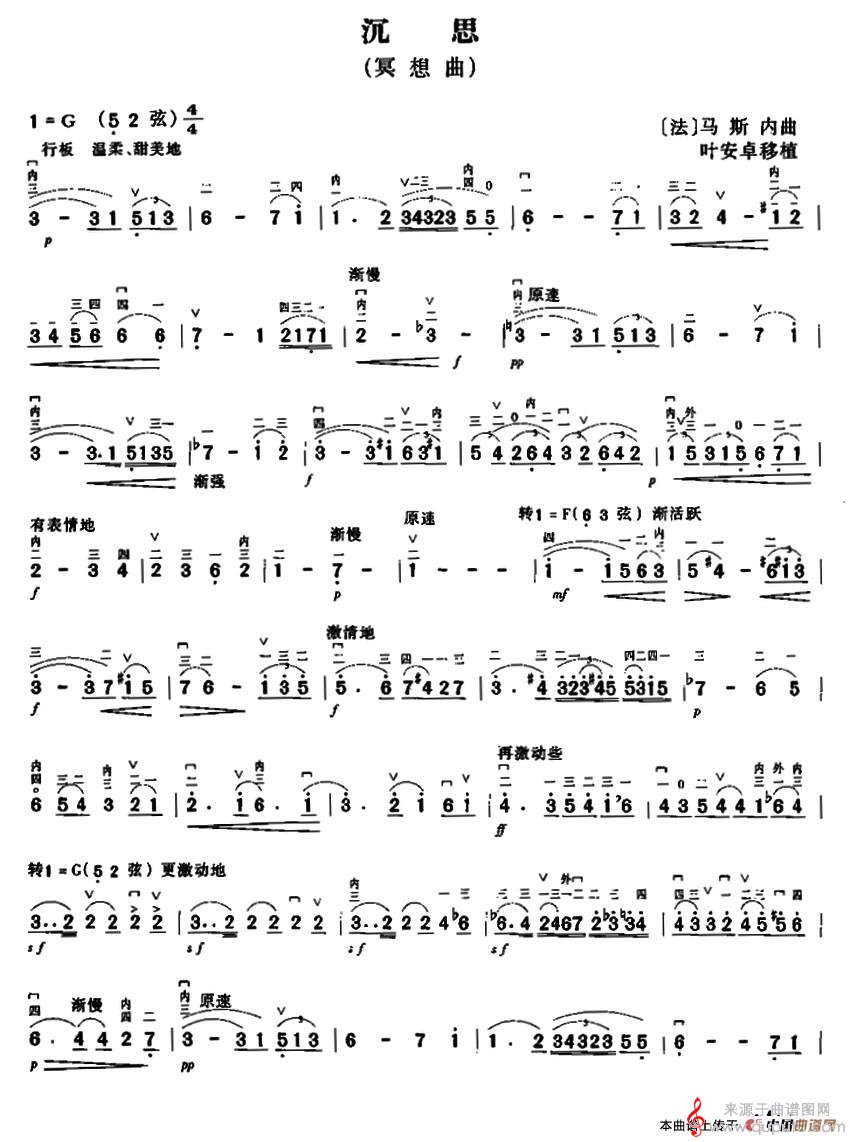 曲谱图网为您提供沉思(冥想曲沉思简谱胡琴谱)找谱子,就上曲谱图网。