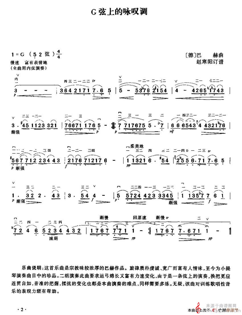 曲谱图网为您提供G弦上的咏叹调(G弦上的咏叹调简谱胡琴谱教学)找谱子,就上曲谱图网。