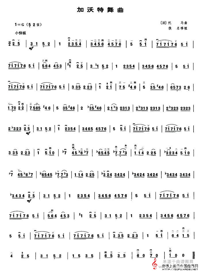 曲谱图网为您提供加沃特舞曲(托马作曲版简谱胡琴谱)找谱子,就上曲谱图网。