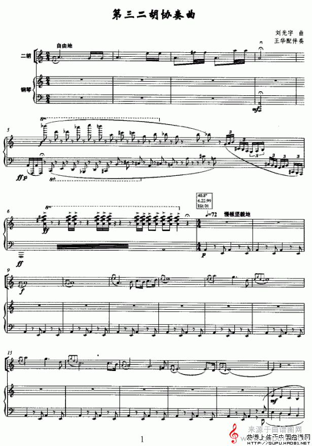 当前位置:曲谱图网器乐曲谱胡琴第三二胡协奏曲(五线谱版简谱曲谱胡琴谱教学)