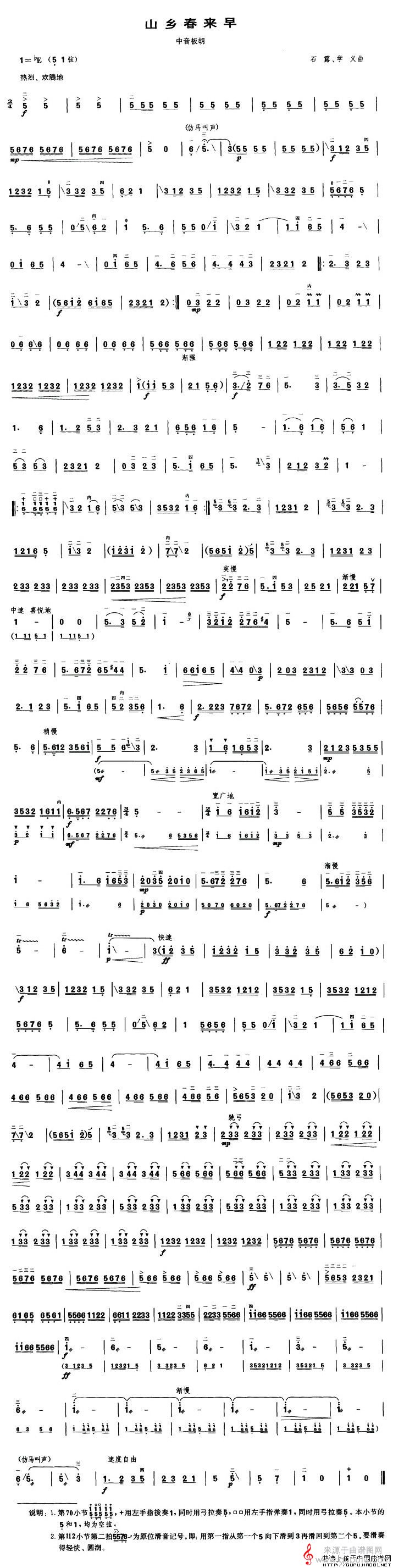 当前位置:曲谱图网器乐曲谱胡琴山乡春来早(中音板胡山乡春来早简谱曲谱)