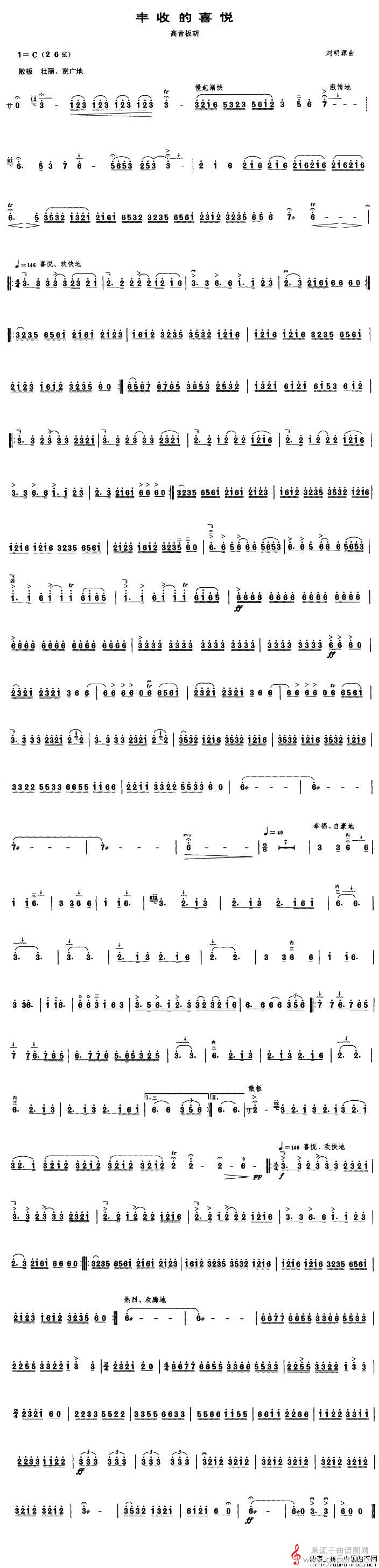 曲谱图网为您提供丰收的喜悦(高音板胡简谱曲谱胡琴谱)找谱子,就上曲谱图网。