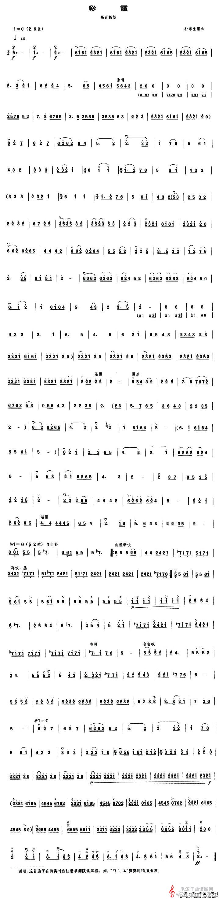 彩霞(高音板胡彩霞简谱胡琴谱)