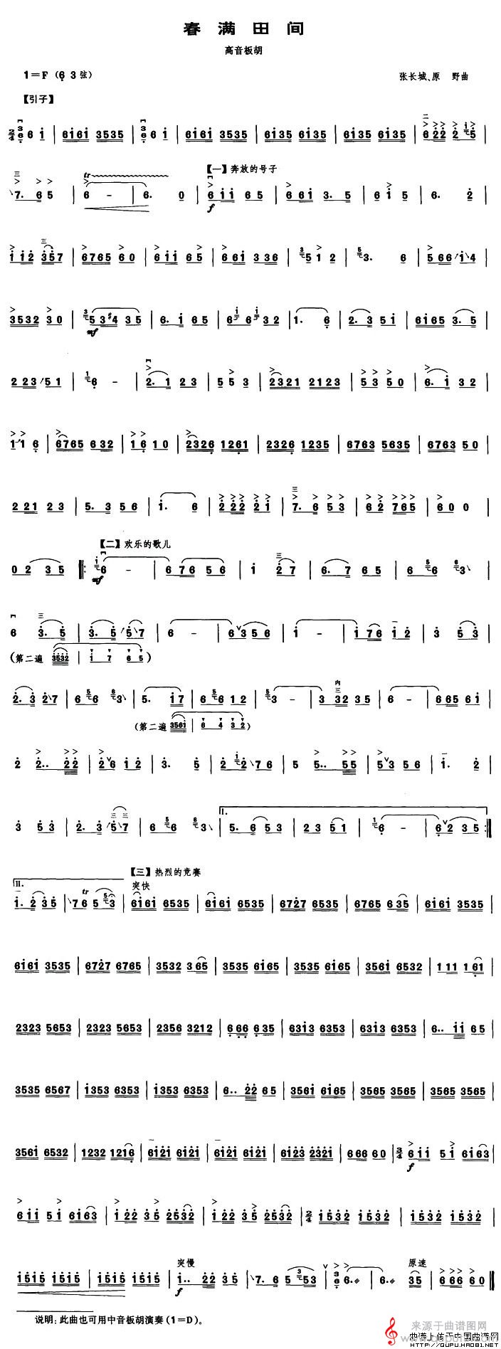曲谱图网为您提供春满田间(高音板胡春满田间歌词简谱教学)找谱子,就上曲谱图网。