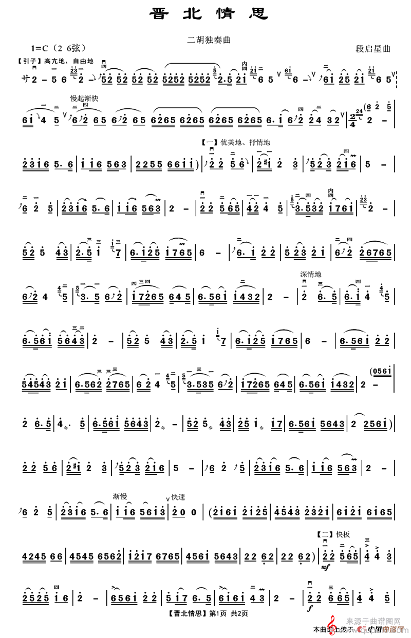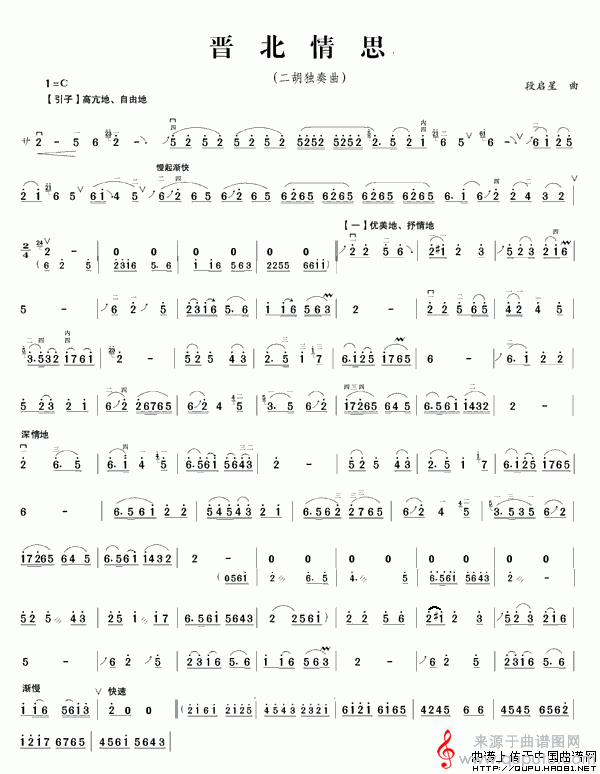 曲谱图网为您提供晋北情思(二胡独奏曲晋北情思简谱胡琴谱)找谱子,就上曲谱图网。