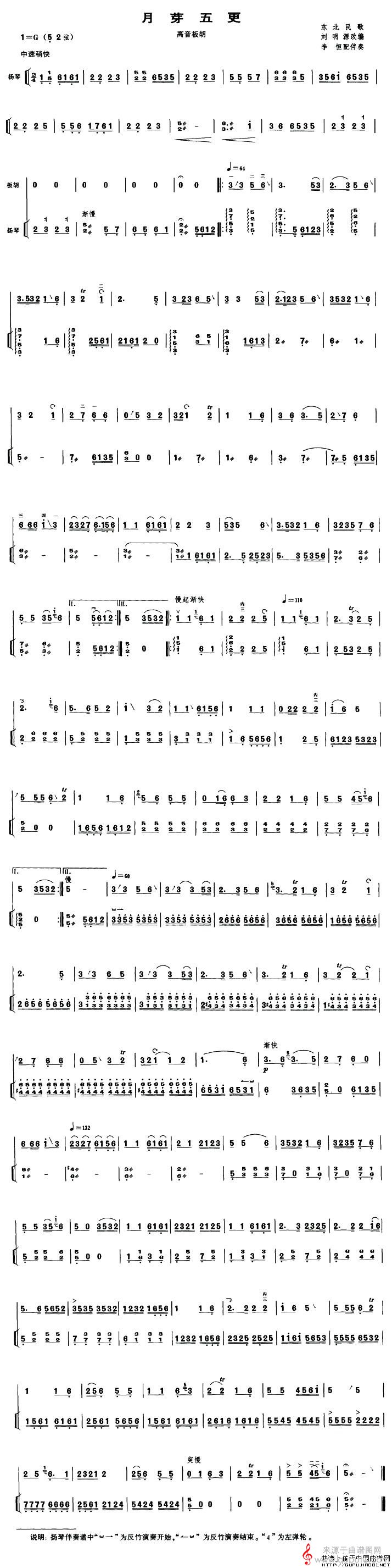 曲谱图网为您提供月芽五更(东北民歌月芽五更高音板胡、扬琴伴奏谱曲谱)找谱子,就上曲谱图网。