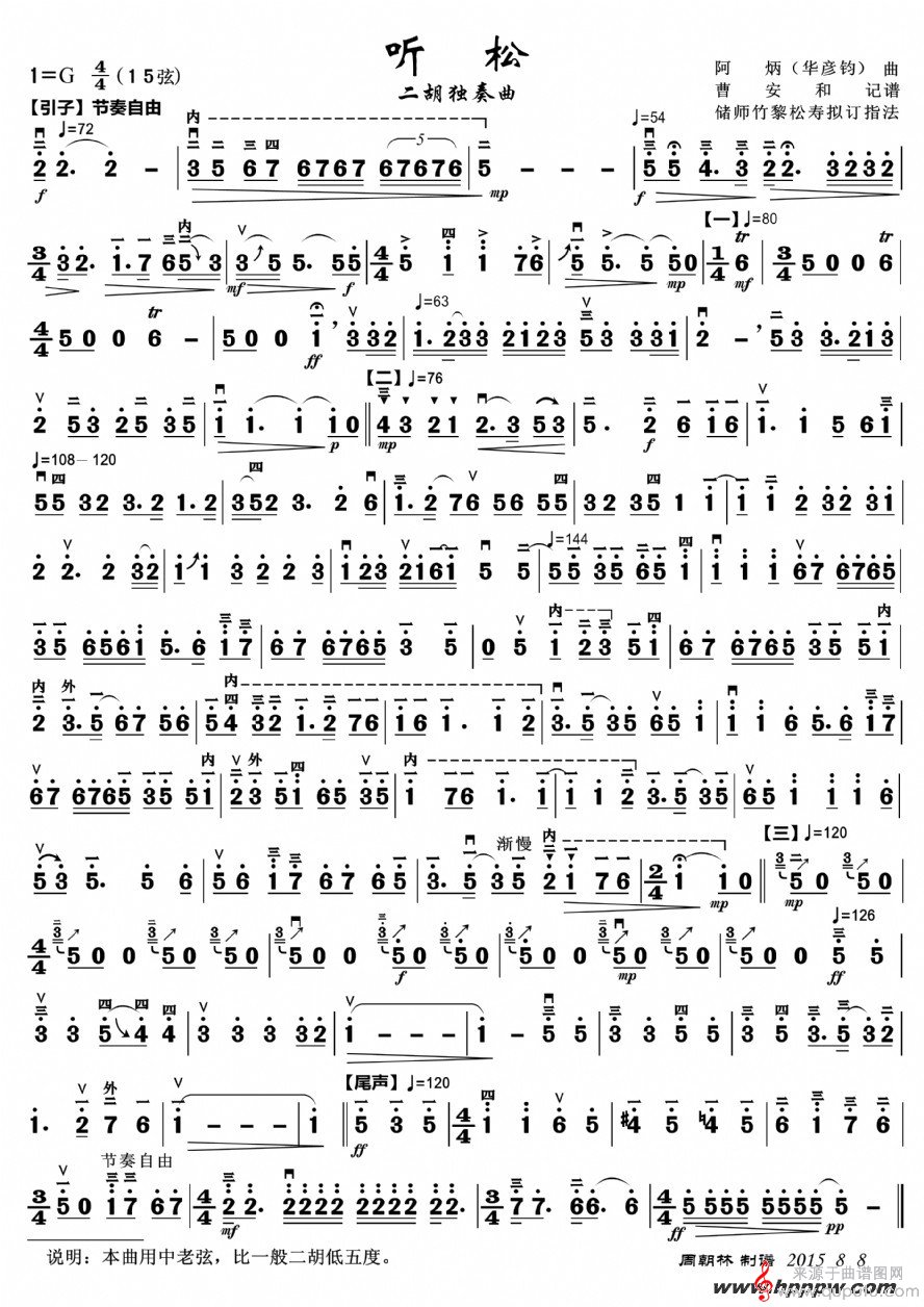 曲谱图网为您提供《听松》二胡谱 阿炳找谱子,就上曲谱图网。
