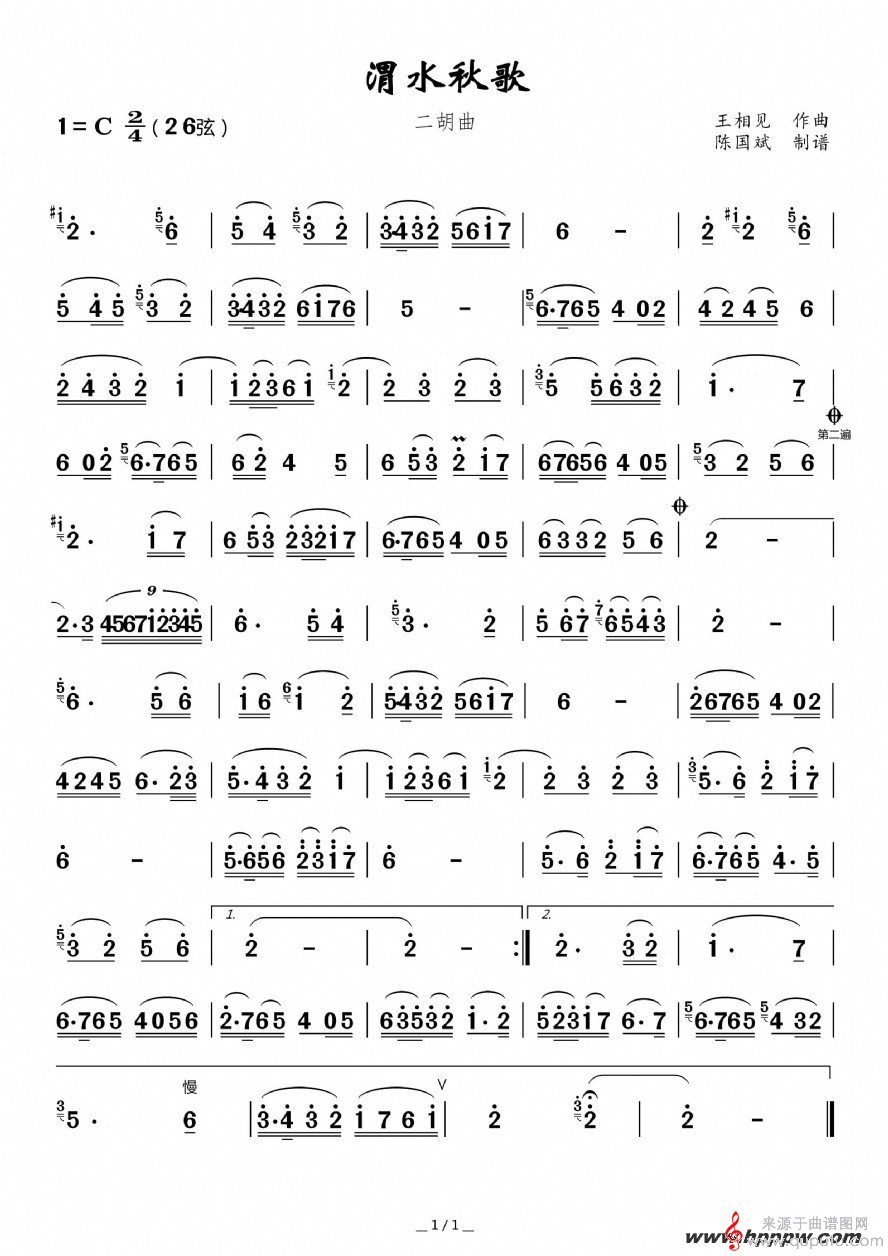 曲谱图网为您提供《渭水秋歌》二胡谱李晓舟版找谱子,就上曲谱图网。