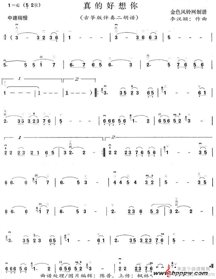 曲谱图网为您提供《真的好想你》二胡谱(古筝版伴奏)找谱子,就上曲谱图网。