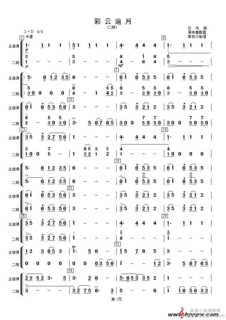 曲谱图网为您提供《彩云追月》二胡谱找谱子,就上曲谱图网。