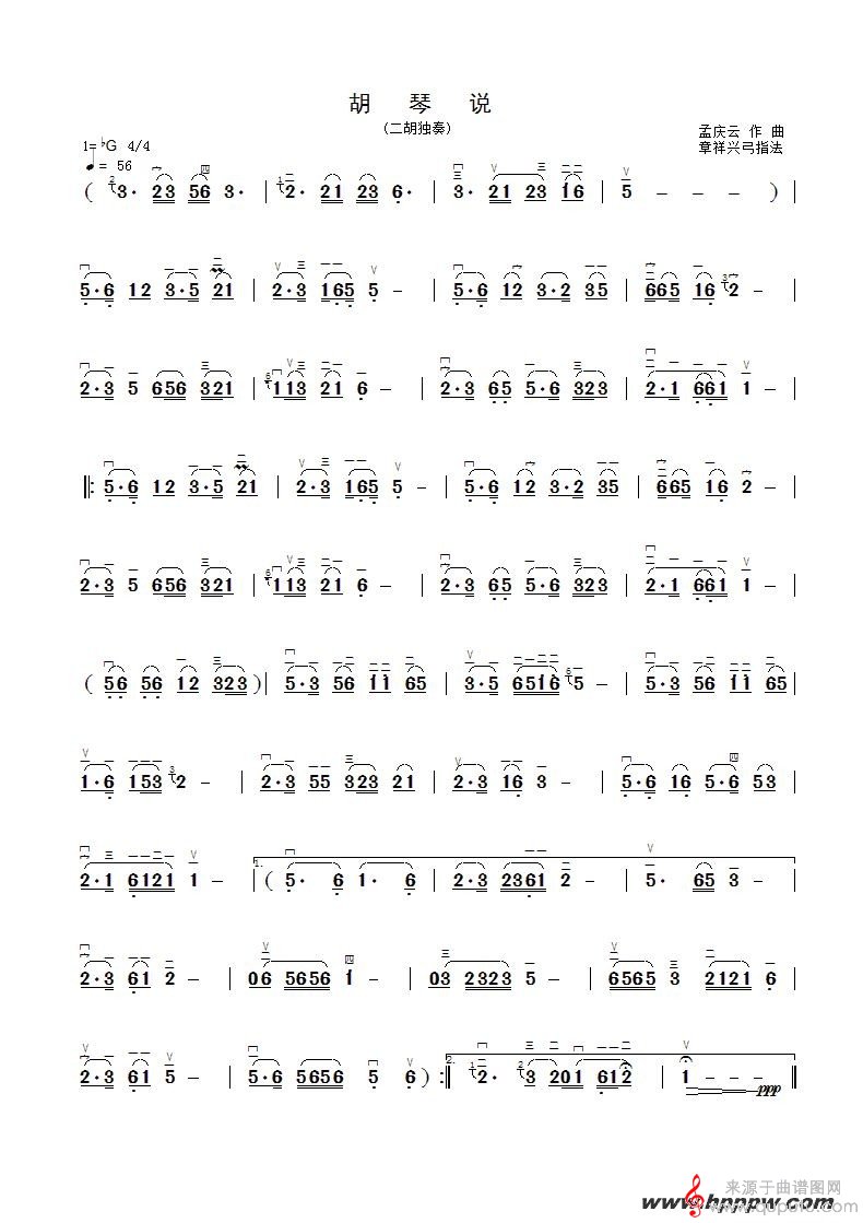 曲谱图网为您提供《胡琴说》二胡弓指法独奏谱找谱子,就上曲谱图网。