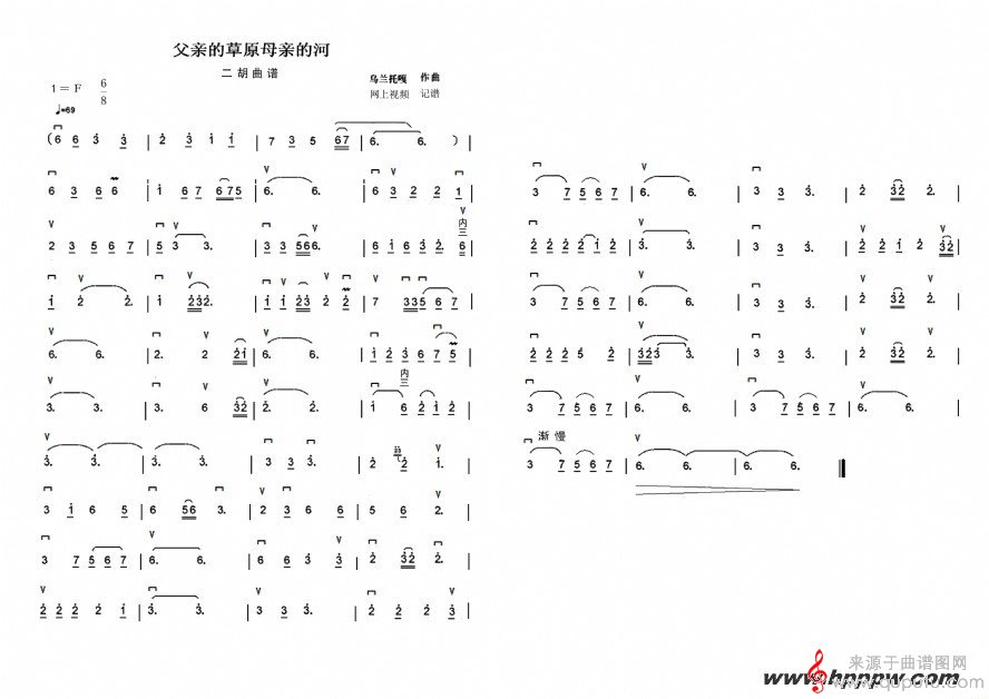 曲谱图网为您提供《父亲的草原母亲的河》二胡曲谱找谱子,就上曲谱图网。