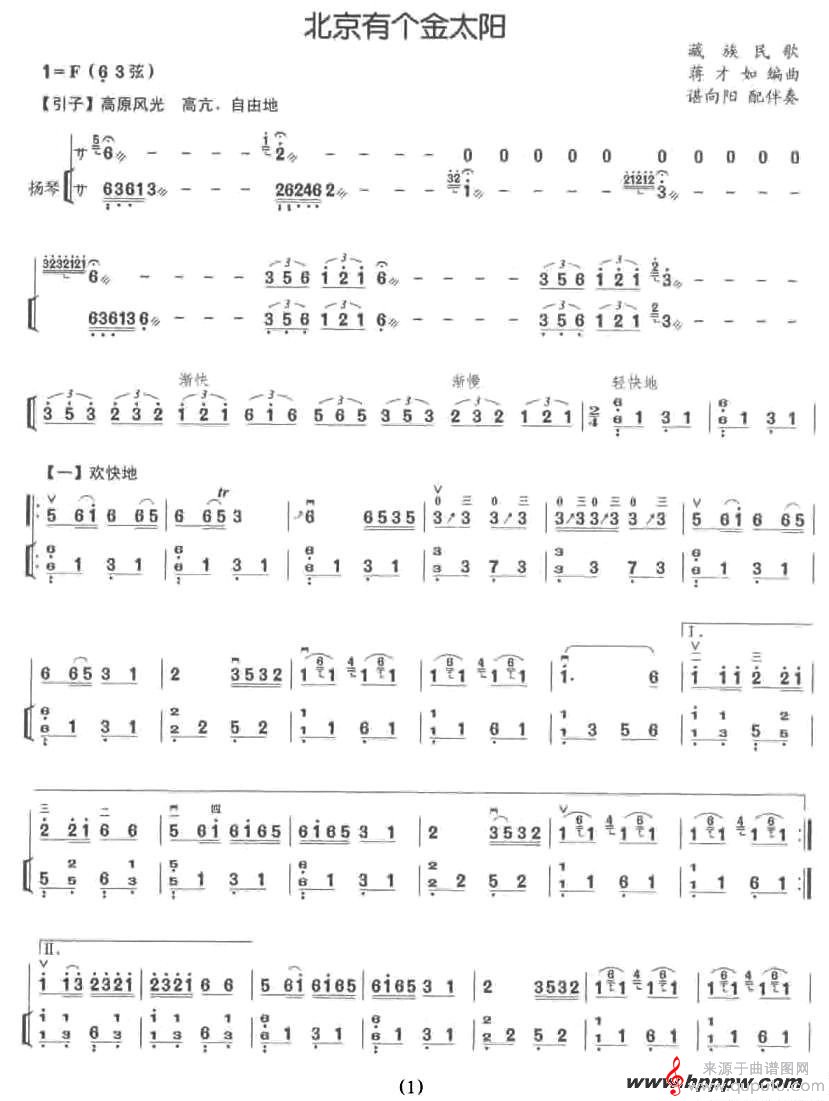 《北京有个金太阳》二胡谱之藏族民歌