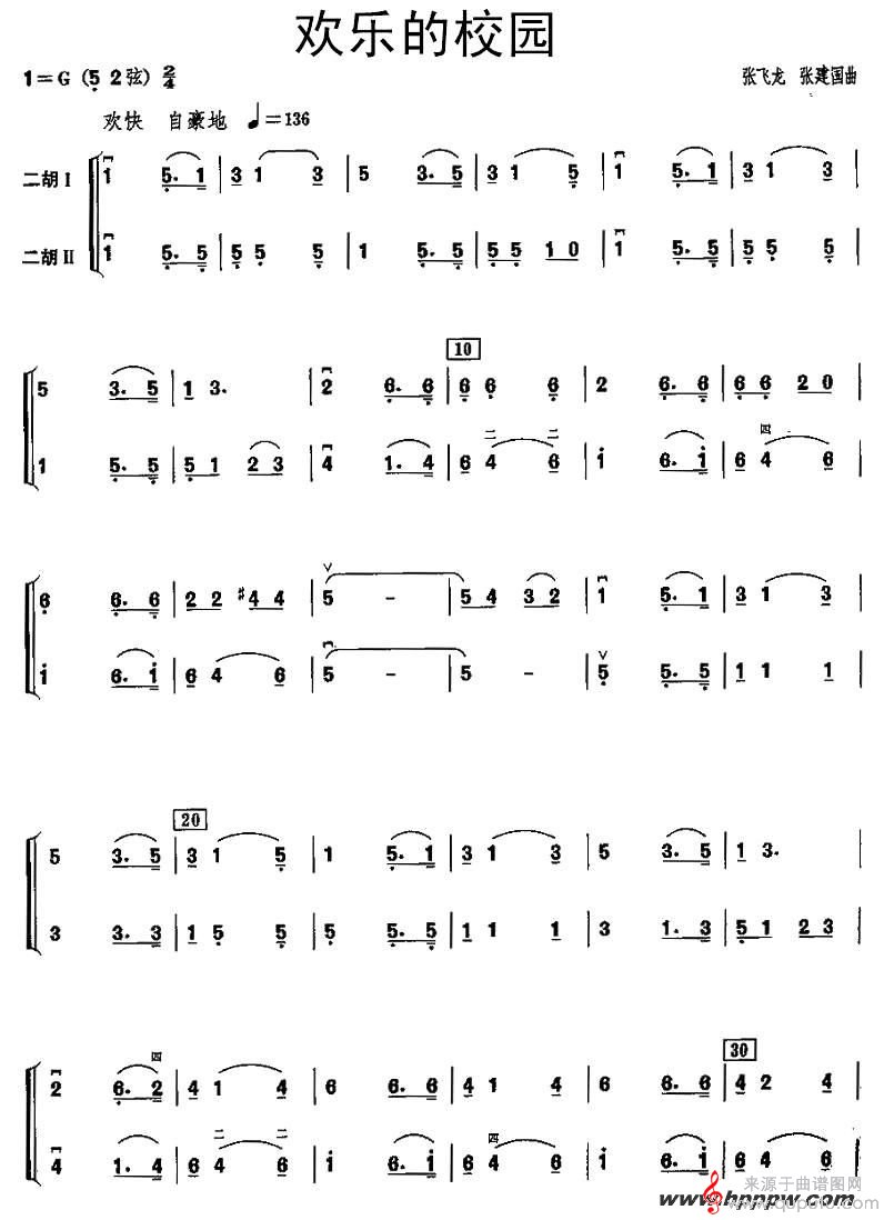 《欢乐的校园》二胡谱张飞张建国作曲版