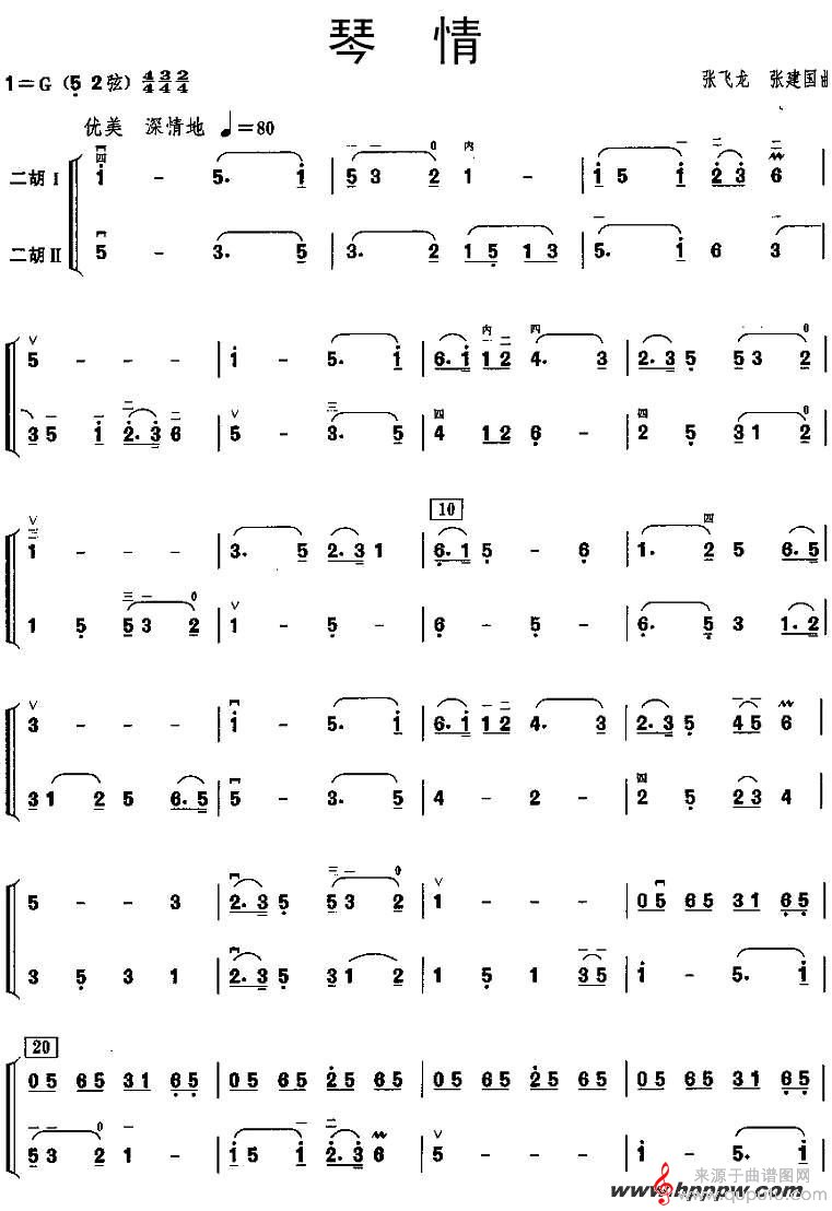 《琴情》二胡谱之张飞张建国版