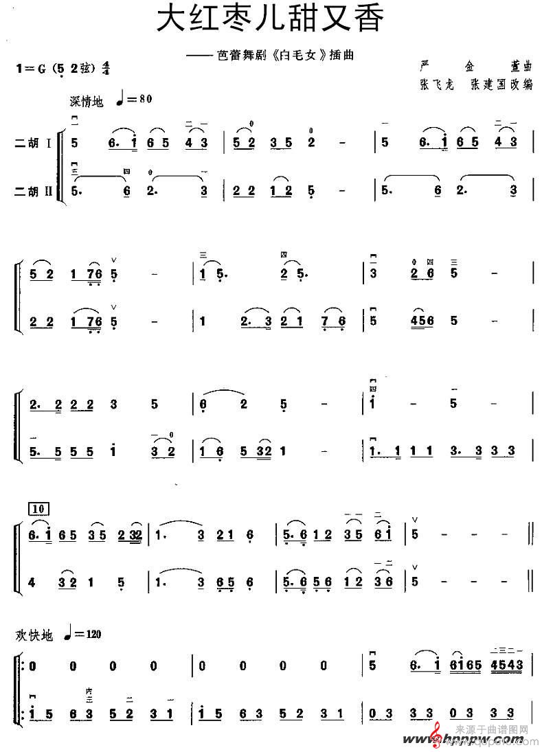 曲谱图网为您提供《大红枣儿甜又香》二胡谱之芭蕾舞剧《白毛女》插曲找谱子,就上曲谱图网。