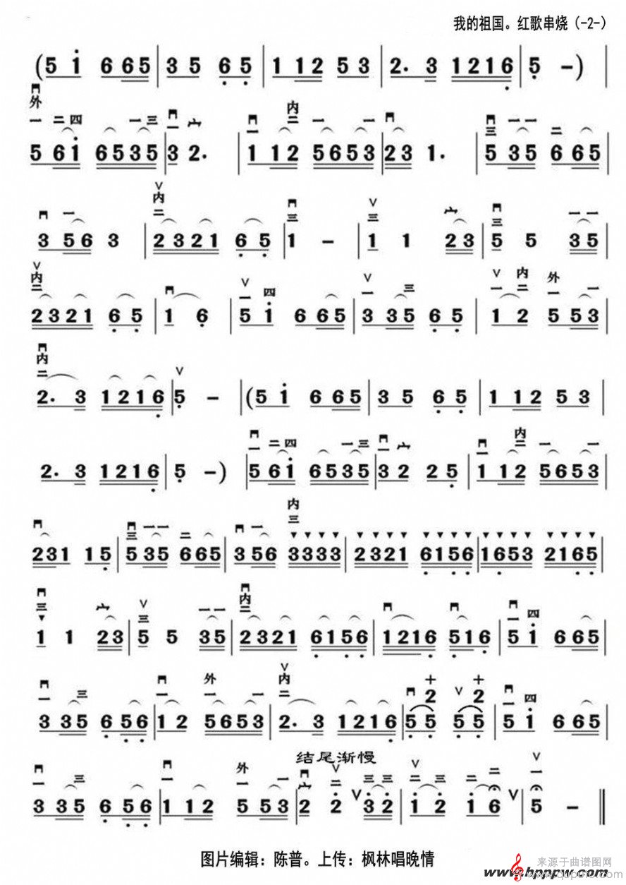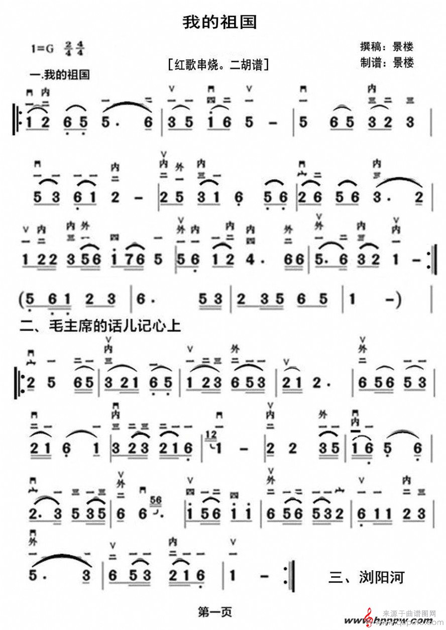 曲谱图网为您提供我的祖国二胡演奏简谱找谱子,就上曲谱图网。