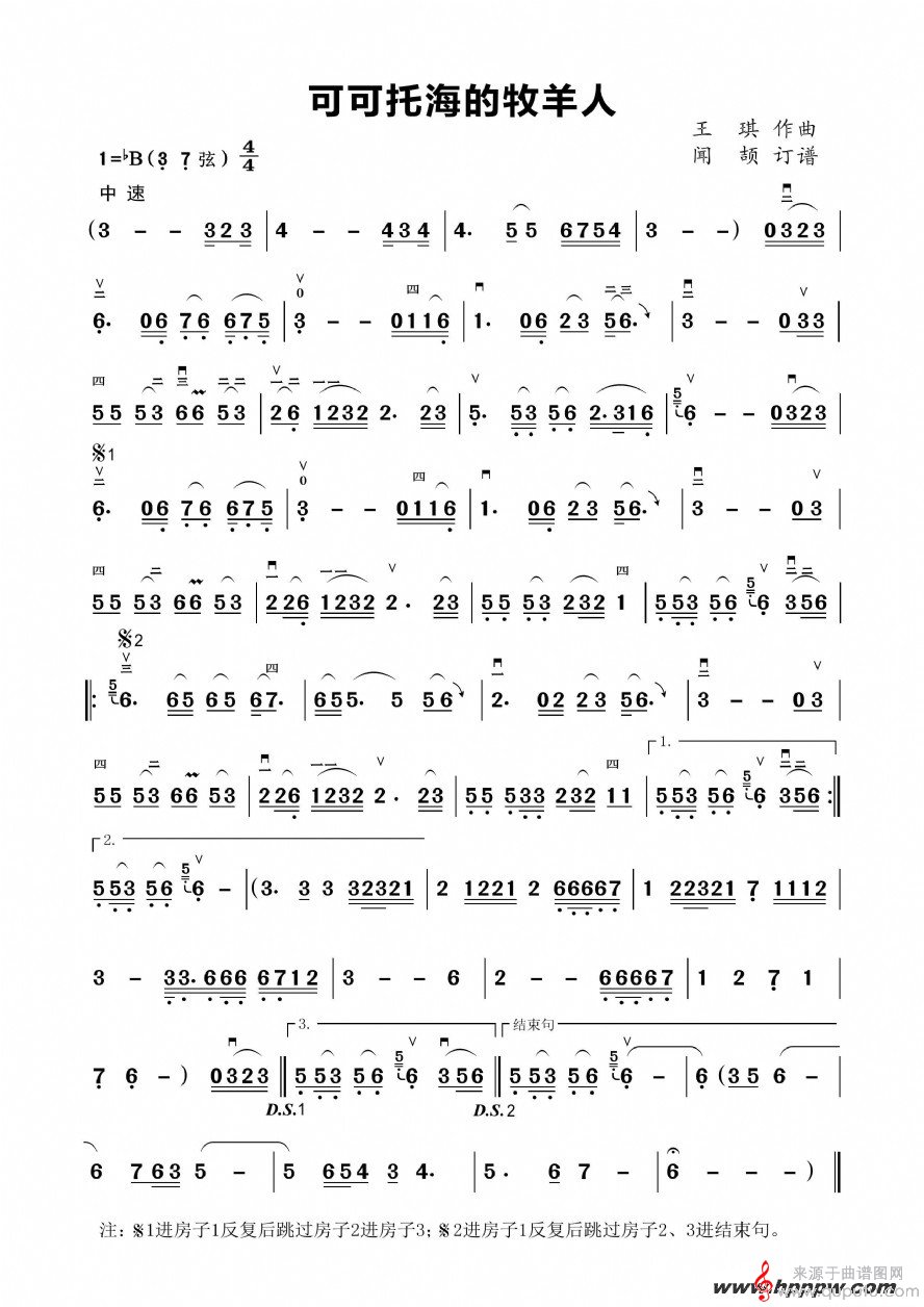 曲谱图网为您提供可可托海的牧羊人二胡简谱找谱子,就上曲谱图网。