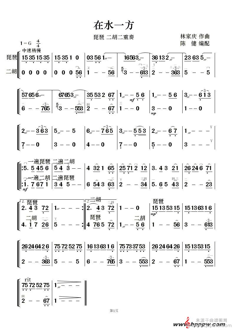 曲谱图网为您提供在水一方二胡二重奏简谱找谱子,就上曲谱图网。