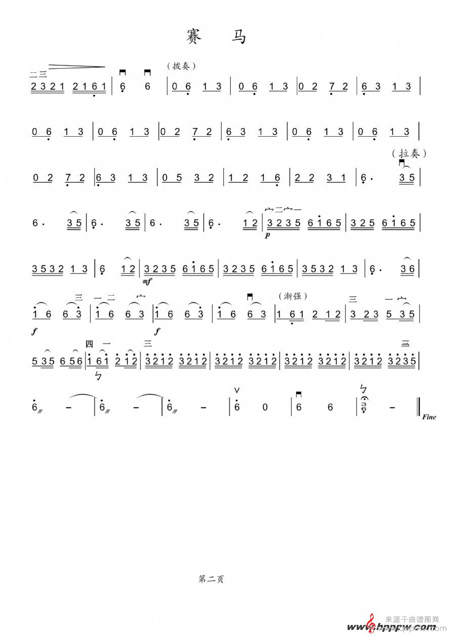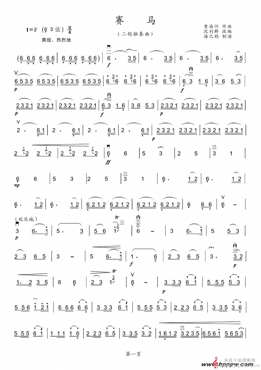 曲谱图网为您提供赛马二胡独奏简谱曲找谱子,就上曲谱图网。