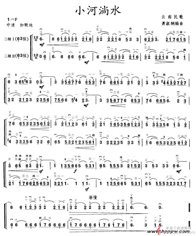 曲谱图网为您提供小河淌水二胡谱找谱子,就上曲谱图网。