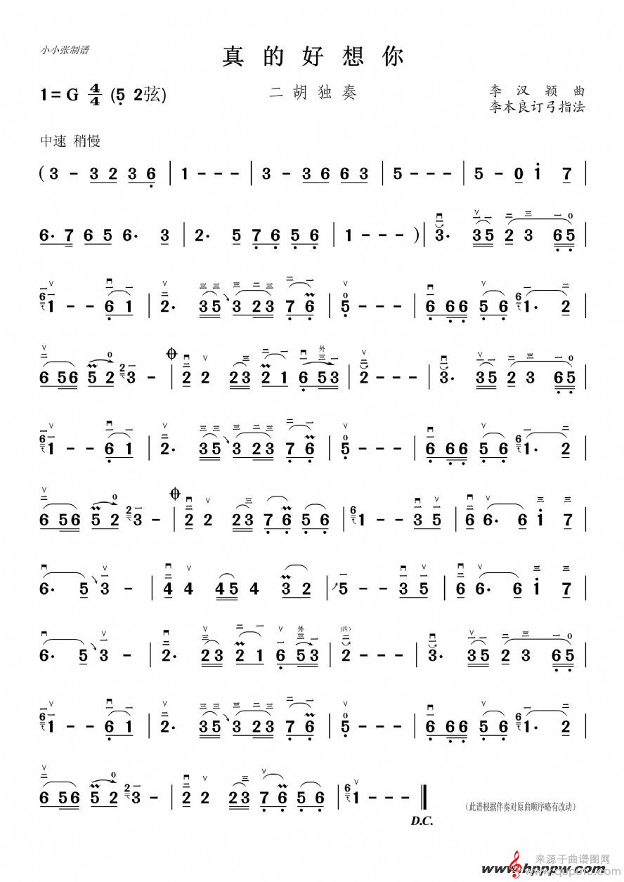 曲谱图网为您提供真的好想你二胡独奏简谱找谱子,就上曲谱图网。