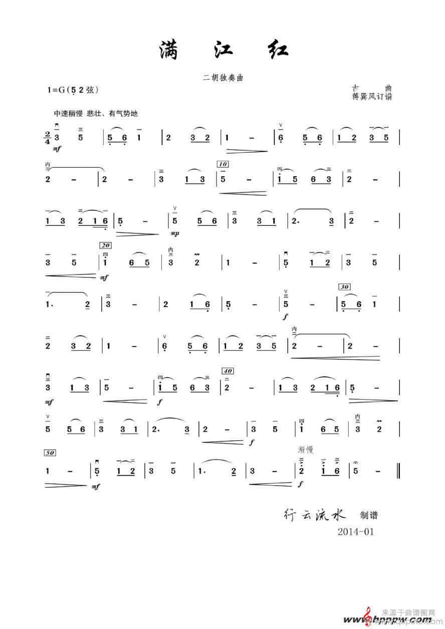 曲谱图网为您提供满江红二胡独奏曲谱找谱子,就上曲谱图网。