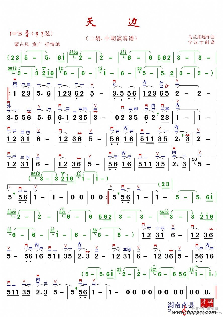 曲谱图网为您提供天边二胡中胡演奏曲谱【多版本】找谱子,就上曲谱图网。