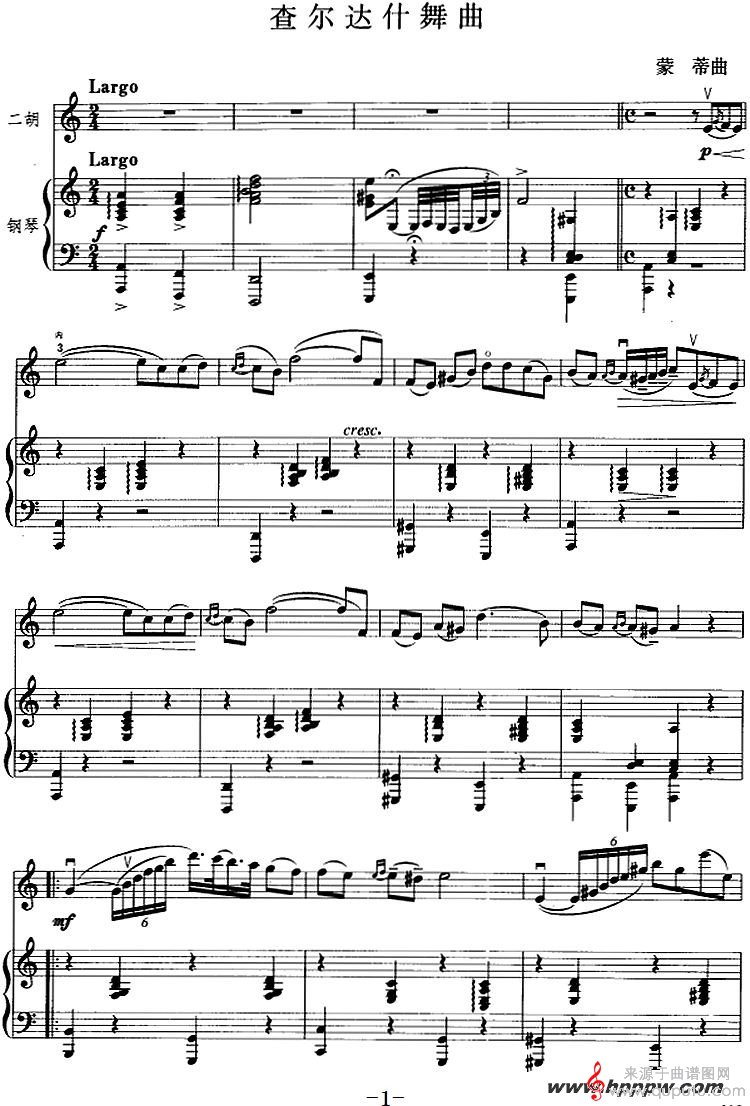曲谱图网为您提供查尔达什舞曲二胡简谱找谱子,就上曲谱图网。