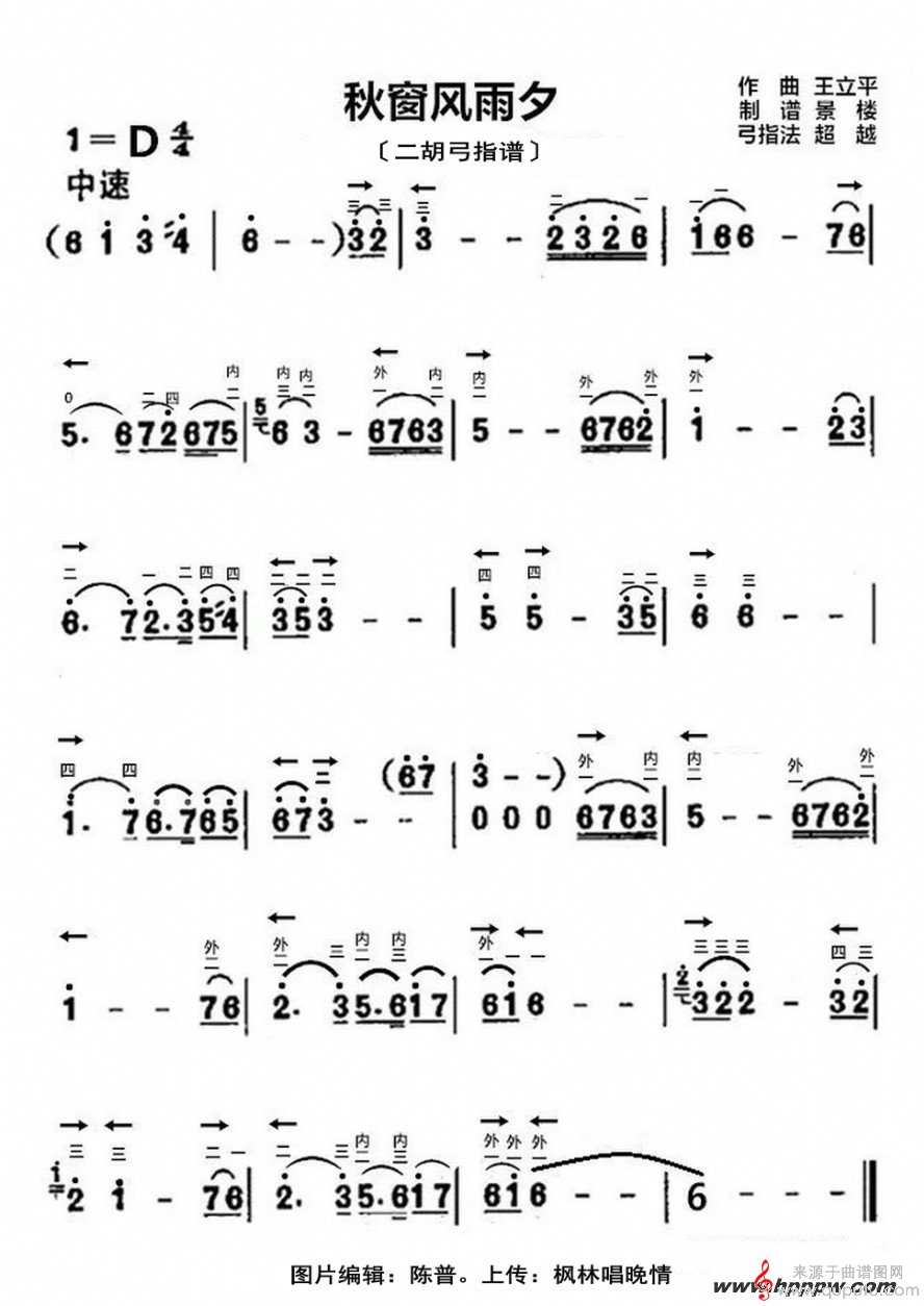 曲谱图网为您提供秋窗风雨夕二胡弓指曲谱找谱子,就上曲谱图网。