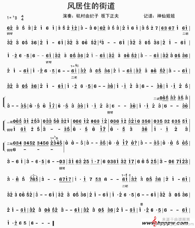 曲谱图网为您提供风居住的街道二胡纯音乐曲谱找谱子,就上曲谱图网。